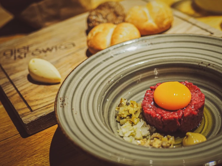 Z tatarem jestem ostrożna. Bo z tatarem jest jak ze śledziami - albo są cudowne, albo nie da się tego zjeść. Jednak gdybym chciała kogokolwiek do tatara przekonać, to zabrałabym go do Gierkrówki. Wykładamy zatem 55 złotych na stół i wybieramy się w tatarową podróż.