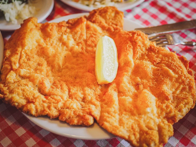 Solidny mięsny obiad, czyli siekany stek, wiedeński sznycel i placek po zbójnicku