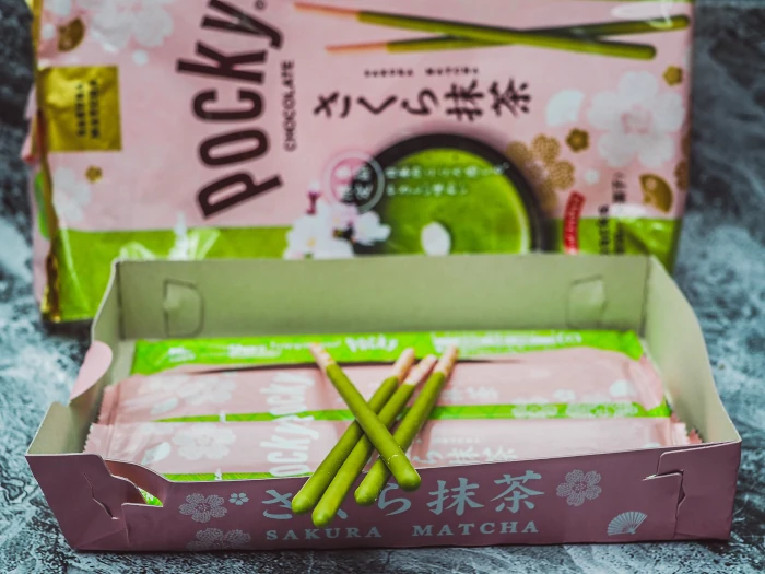 Glico Pocky o smaku sakury i zielonej herbaty matcha