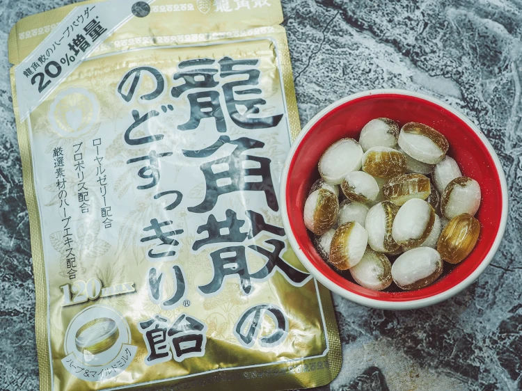 Ziołowe cukierki na gardło o dwustuletniej recepturze Nodo Sukkiri Ame od firmy Ryukakusan