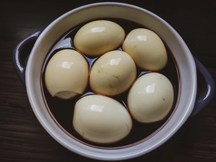 Jajka najlepsze są po upływie ok. 24-48h od przygotowania. Przez leżenie w marynacie ich białko nabiera smaku i koloru, a żółtko