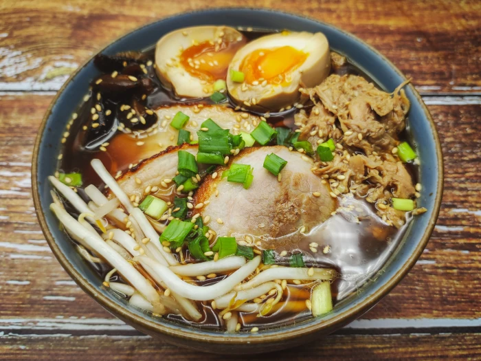 - Kuchnia japońska·Dania główne·Zupy·Sos sojowy·Kurczak·Jajko·Grzyby·Makaron·Wieprzowina·Rameny