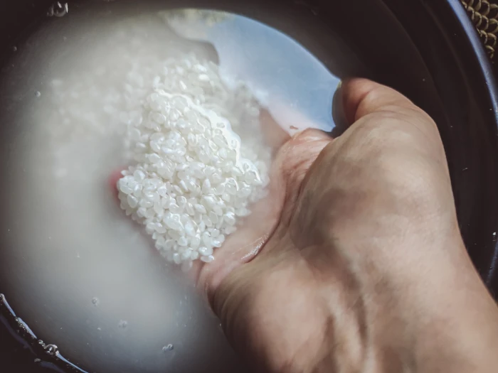 Azjatycki ryż dokładnie opłucz zimną wodą, żeby pozbyć się zanieczyszczeń.