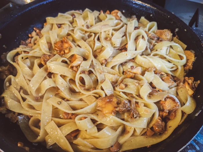 Kremowy makaron z kurkami w stylu włoskiej carbonary