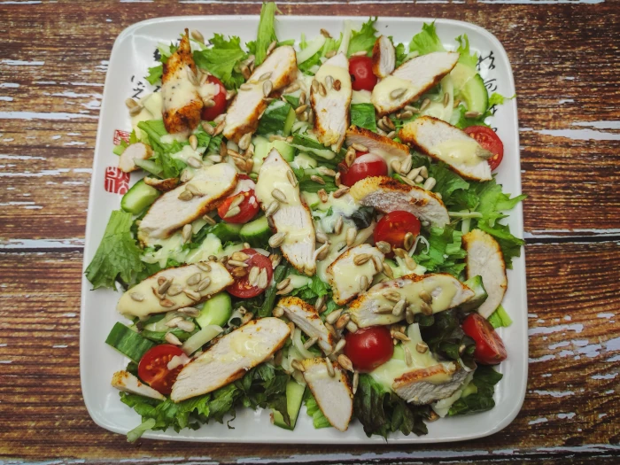 - Kuchnia fusion·Sałatki·Indyk·Zielenina·Pomidor·Ser·Na wynos