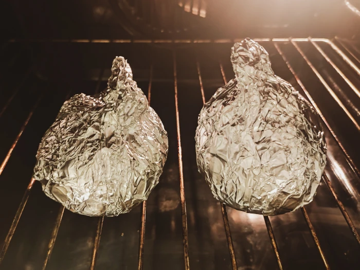 Obrane buraki zawiń w folię aluminiową (błyszczącą stroną do wewnątrz). W przypadku bardzo dużych buraków można je przekroić na pół, by skrócić ich czas pieczenia.